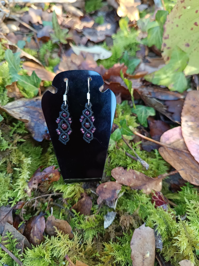 Boucle d oreille noir avec perles en grenat