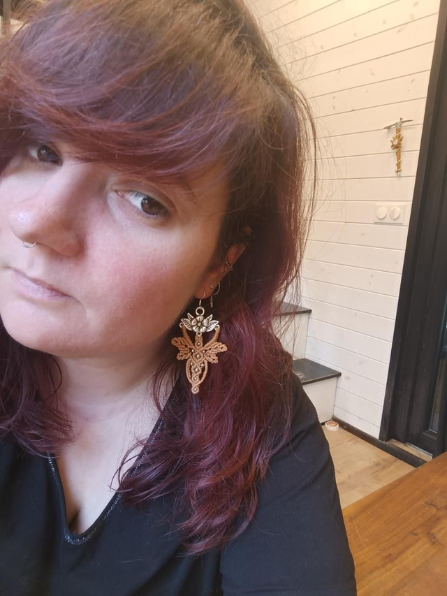 Bracelet bleu avec estampe couleur bronze , perle en apatite et calcite orange