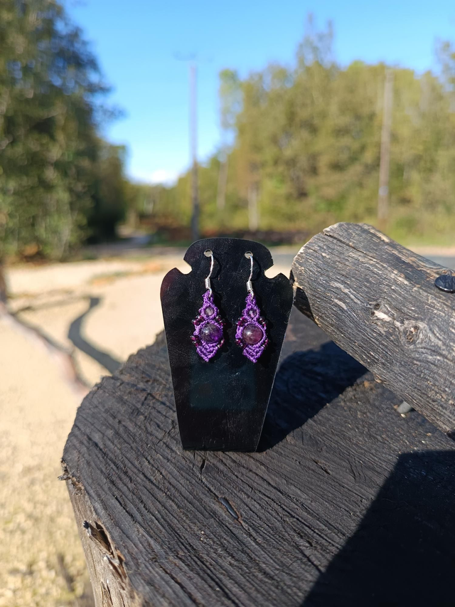Boucle d'oreille violette perle améthyste