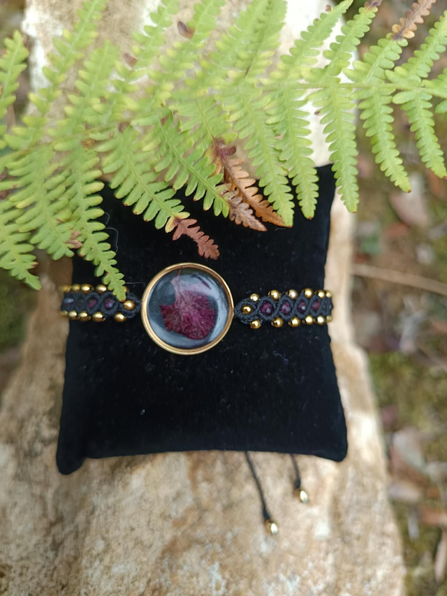 Bracelet avec bijou fleur artisanale avec perle en grenat et doré