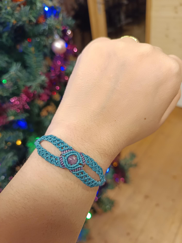 Bracelet bleu et violet avec tourmaline violette et améthyste