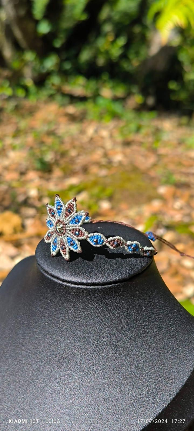 Collier avec bois manguier ondé échauffé stabilisé teinté et perle en tourmaline violette