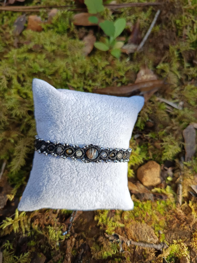 Bracelet noir avec perle agate Botswana et perle argenté