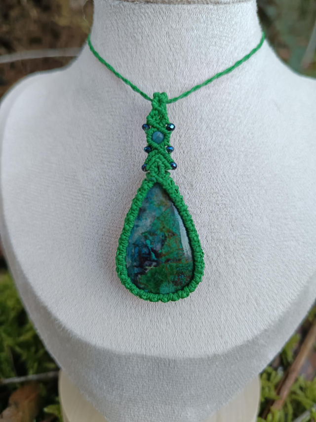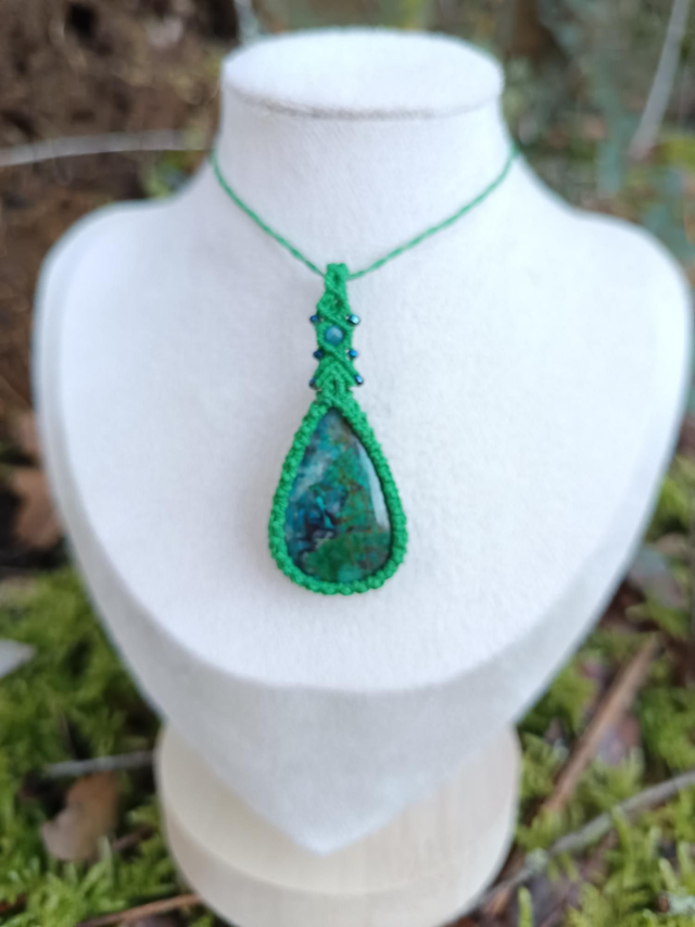 Collier en Pendentif vert avec pierre malachite chrysocolle