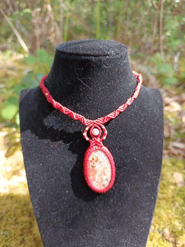 Collier rouge avec une jaspe rosetta